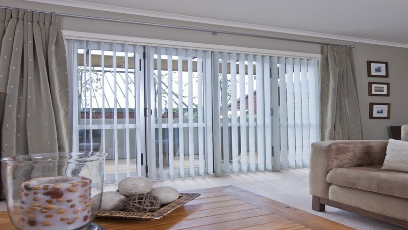 Available in a variety of fabrics, colors, and finishes, vertical blinds combine functionality with style to suit any interior.